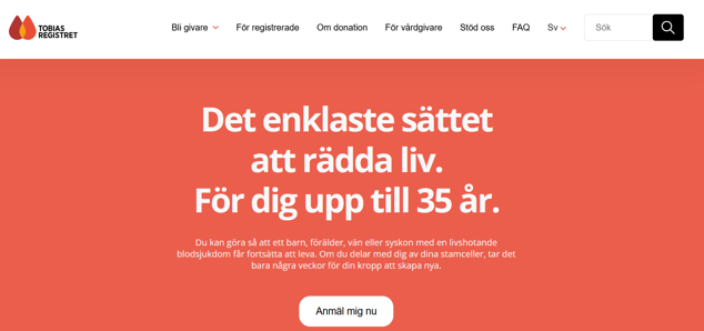 Du som är mellan 18-35 år kan anmäla dig till det livsviktiga Tobiasregistret. Läs mer: