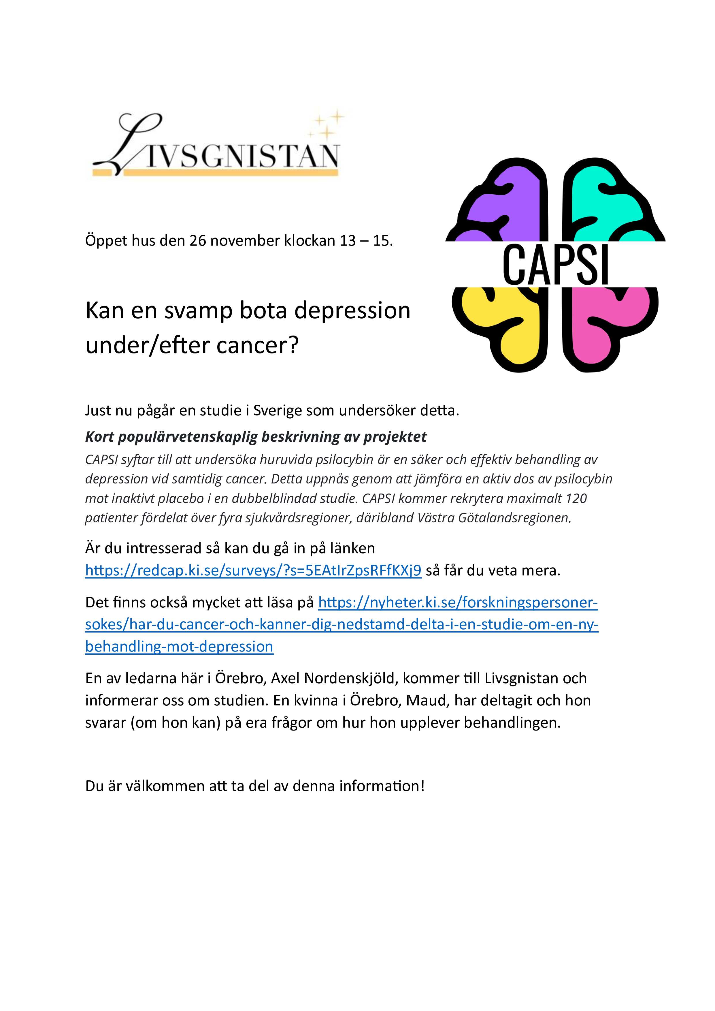 25 nov. Capsi. Svamp bota depr. under/efter cancer HÄR.