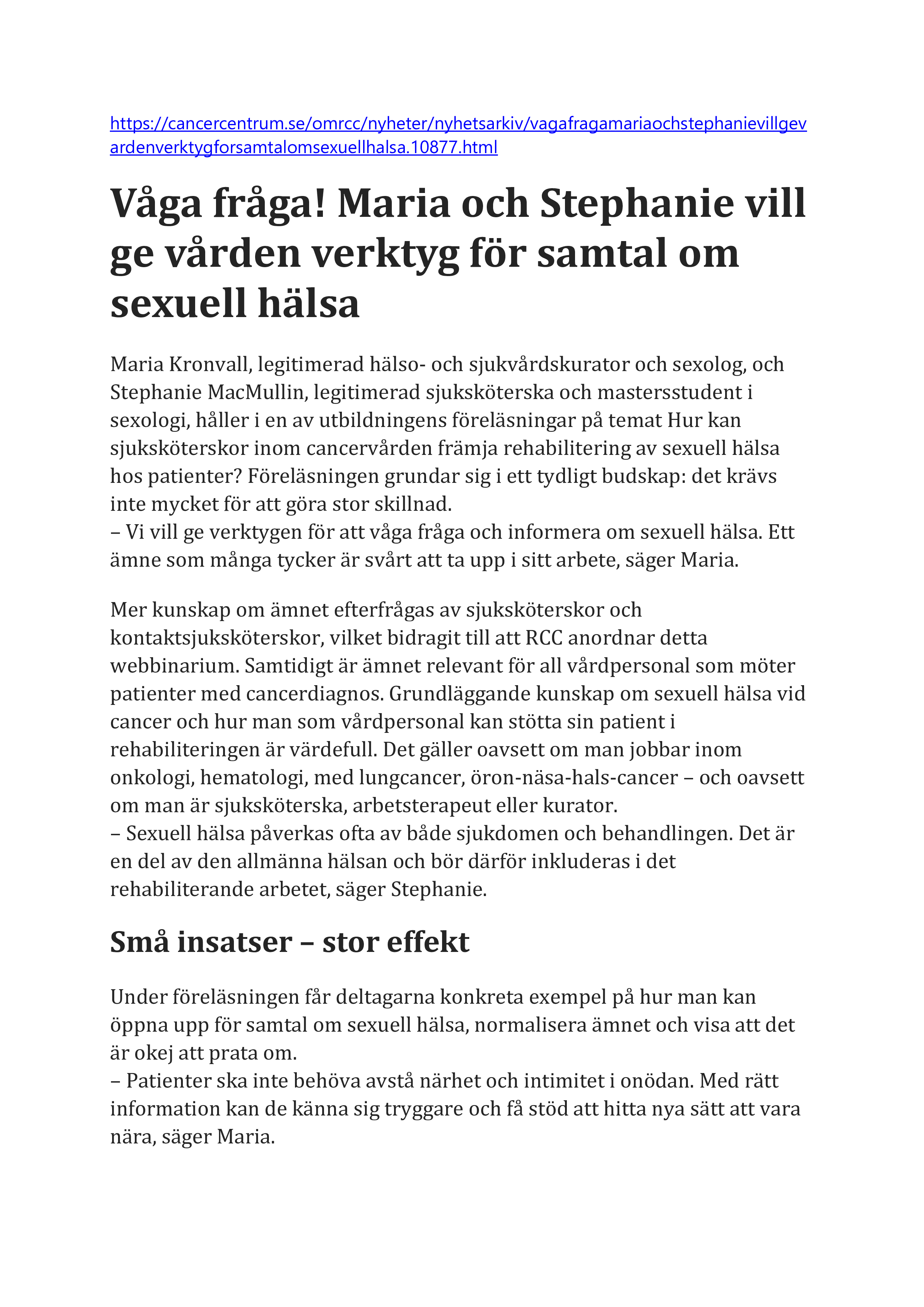 19 nov. Webbinarium. Sexuell hälsa Sida 1 HÄR. Forts. sida 2 HÄR
