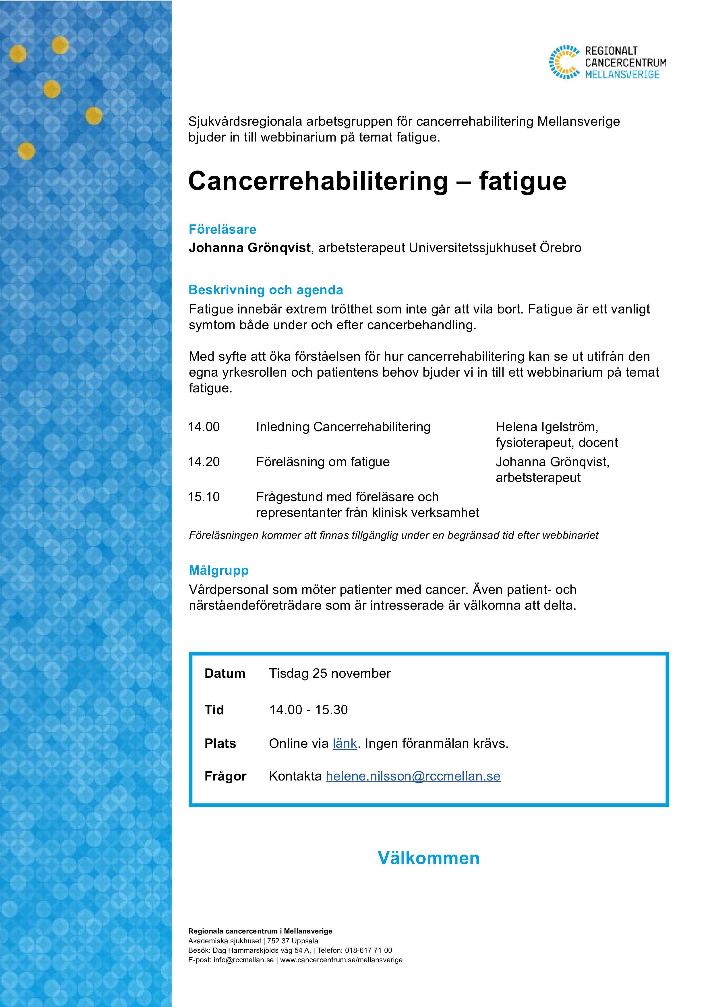 26 nov. Cancerrehab - Fatigue HÄR