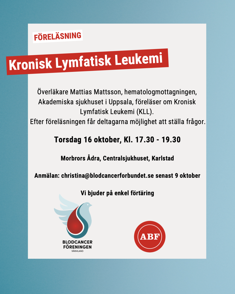Överläkare Mattias Mattsson, besöker vår förening och föreläser om Kronisk Lymfatisk Leukemi (KLL).